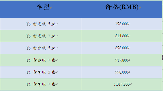 沃爾沃全新XC90共上市T6車型3款車型6個版本,分別為T6智逸版、T6智雅版和T6智尊版,售價區(qū)間為人民幣798,000元至1,017,800元。同日,代表沃爾沃混合動力最新成果的全新XC90 T8 車型也正式開啟中國預訂,具體詳情請查詢當?shù)匚譅栁质跈嘟涗N商。
