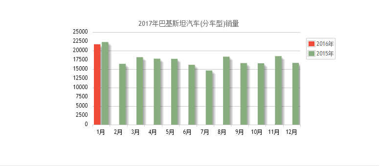 2017年1月份巴基斯坦汽車(分車型)銷量