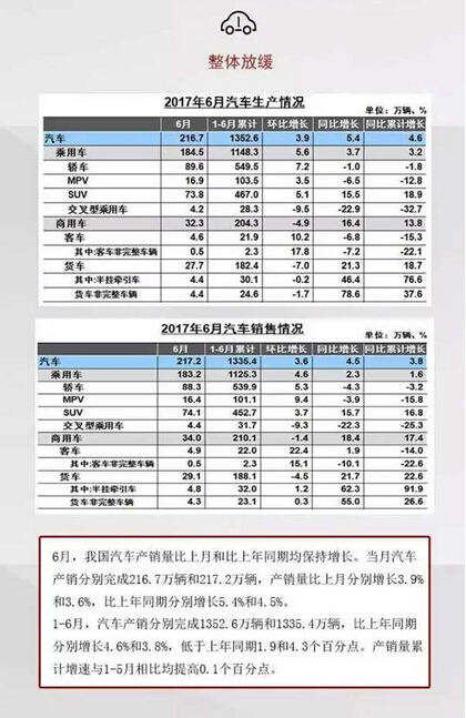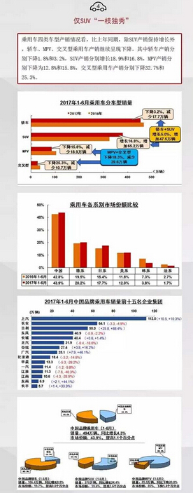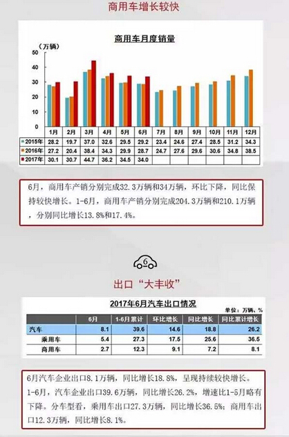 中汽協(xié)發(fā)布半年數(shù)據(jù) PPT數(shù)據(jù)詳情作者:網(wǎng)站管理員 來源:中國汽車零部件 時間:2017/7/12 10:56:35 盡管上半年產(chǎn)銷增幅僅為4.6%和3.8%,去年下半年的高增速等壓力疊加,導(dǎo)致下半年壓力倍增,但是中汽協(xié)仍沒有調(diào)整全年產(chǎn)銷5%增速目標(biāo)的計劃。 對此,中汽協(xié)秘書長助理許海東分析:當(dāng)前,我國的汽車消費需求保持在一個平穩(wěn)較快的增長區(qū)間,這將推動我國汽車產(chǎn)銷量保持在一定的區(qū)間。同時,去年底透支的銷量已經(jīng)在今年上半年被逐步消化,中汽協(xié)預(yù)測下半年汽車市場將恢復(fù)正常的消費常態(tài)。 中汽協(xié)副秘書長師建華表示,中國品牌銷量和市場占有率的持續(xù)增長是當(dāng)前我國汽車市場最值得欣慰的事,尤其是以吉利、廣汽為代表的中國品牌,不僅在銷量上迎來增長,產(chǎn)品品質(zhì)也在不斷上升,可以和合資品牌同場競爭是一個很明顯的進(jìn)步,甚至開始在國際市場上唱主角,這表明中國品牌的競爭力正在不斷提升。 師建華 隨著市場競爭的不斷加劇,希望中國品牌能做真正的中國品牌,不能僅靠短期的SUV市場需求提升銷量,而是要提升產(chǎn)品的總體競爭力。 中汽協(xié)副秘書長許艷華表示,補貼退坡、準(zhǔn)入產(chǎn)品重新申請是今年上半年新能源汽車增速不高的主要原因,過去幾年的經(jīng)驗也顯示,新能源汽車會在下半年出現(xiàn)較高增速。許艷華認(rèn)為,電池等技術(shù)的進(jìn)步讓企業(yè)看到了新能源汽車的前景,這將保證我國新能源汽車市場保持較快的增長,而雙積分政策的推行,用強制性手段讓企業(yè)“不得不”投入新能源汽車市場,這也將推進(jìn)新能源汽車的市場發(fā)展。 出口方面,許海東分析,主要出口國——俄羅斯、南美、伊朗等國的市場復(fù)蘇是汽車出口持續(xù)增長的主要原因。合資品牌的出口也在不斷增長,例如上汽通用反出口到美國、智利等市場,福特汽車出口至美國等。不過,對于合資品牌出口需要有更理性的認(rèn)識。 許海東 合資品牌出口受當(dāng)?shù)厥袌鲂枨蠛推髽I(yè)的市場布局等因素影響,會否成為我國汽車出口的常態(tài)受這些因素影響,很難確定。 許海東認(rèn)為,本地化生產(chǎn)是合資的首選,從長期看,合資企業(yè)不太可能長期以合資品牌來反哺其母國。