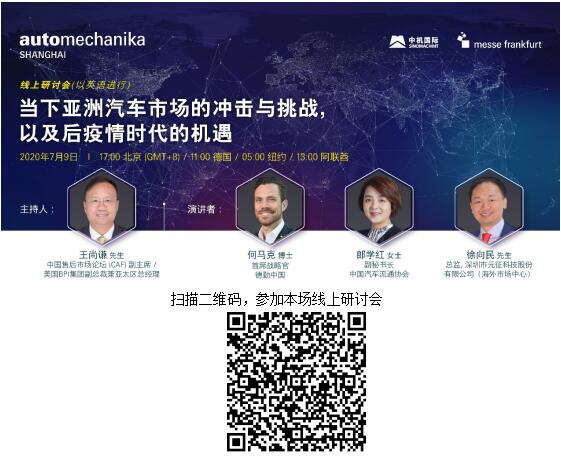 線上研討會(huì) | 7月9日: 當(dāng)下亞洲汽車市場(chǎng)的沖擊與挑戰(zhàn),以及后疫情時(shí)代的機(jī)遇作者:網(wǎng)站管理員 來源:中國汽車零部件 時(shí)間:2020/7/3 15:31:39 線上研討會(huì) | 7月9日: 當(dāng)下亞洲汽車市場(chǎng)的沖擊與挑戰(zhàn),以及后疫情時(shí)代的機(jī)遇