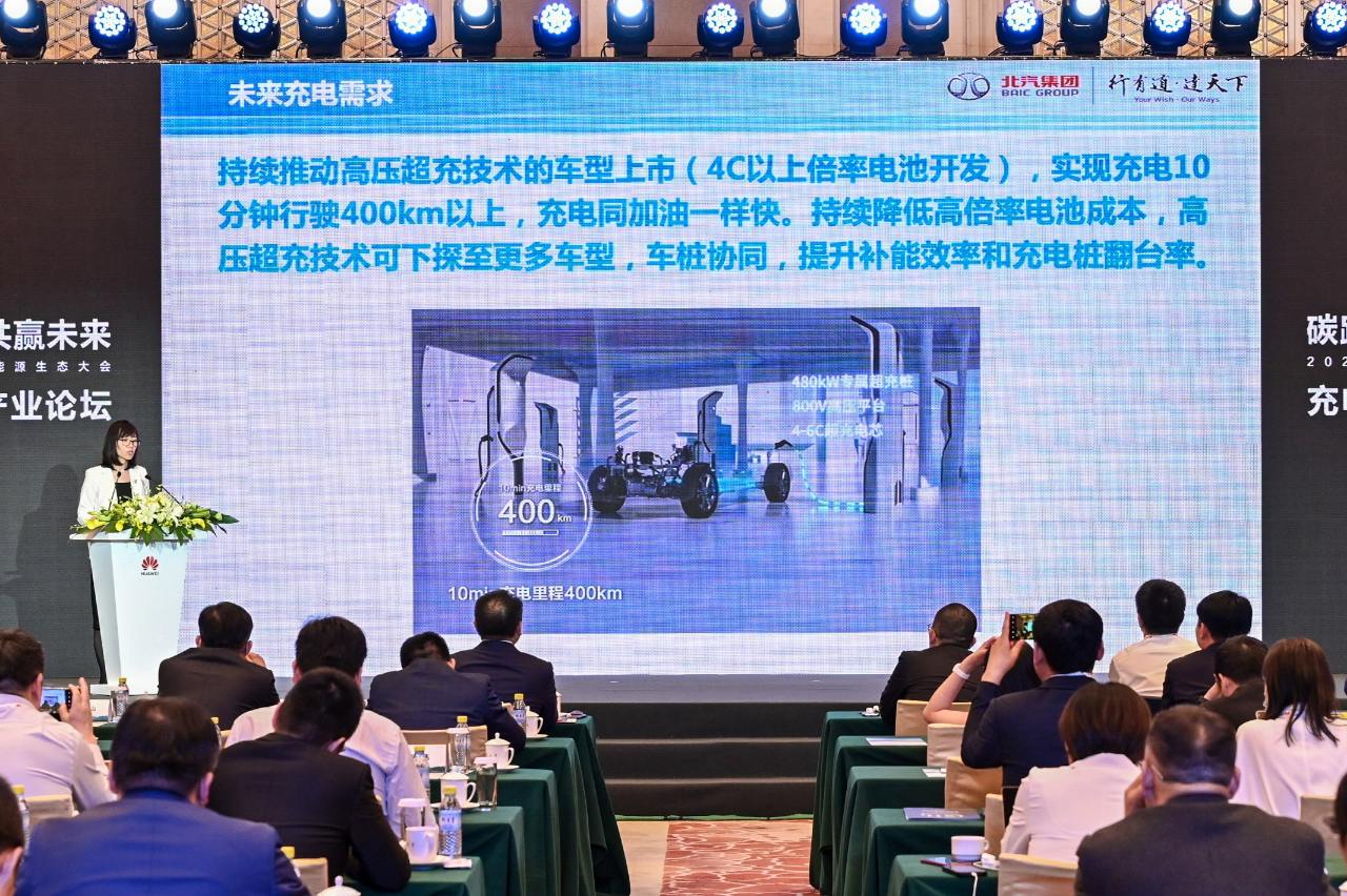 中國電動汽車百人會供應(yīng)鏈研究與合作中心主任 高翔 北汽新能源充電開發(fā)部部長肖勝然在會上與大家共同探討電動汽車的出行補能解決方案。她表示,為提升充電體驗,車企持續(xù)推動高壓平臺車型上市和超充技術(shù)應(yīng)用,整車逐步由追求“長續(xù)航”向“適度續(xù)航+超級充電”方向轉(zhuǎn)變。北汽自2018年開始布局高壓超充技術(shù),2022年在國內(nèi)率先量產(chǎn)800V高壓2.2C超充車型——極狐阿爾法S HI版,快充功率可達(dá)到近200kW,充電10分鐘可以增加200km里程。后續(xù)北汽將持續(xù)進(jìn)行800V/4C以上超充技術(shù)研發(fā),實現(xiàn)充電功率400kW以上,充電10分鐘續(xù)航增加400km以上,讓電動汽車充電基本接近燃油車加油速度。同時降低高倍率電池成本,高壓超充技術(shù)下探至更多車型,助推汽車電動化進(jìn)程。