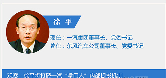 一汽發(fā)布人事調(diào)整公告 徐平任集團董事長作者:網(wǎng)站管理員 來源:中國汽車零部件 時間:2015/5/7 13:09:20 5月7日上午,一汽集團官網(wǎng)發(fā)布有關(guān)公司高層人事變動的公告。 公告指出,當(dāng)日一汽集團公司召開中層以上管理人員大會,經(jīng)中共中央組織部干部宣布,徐平任中國第一汽車集團公司董事長、黨委書記。