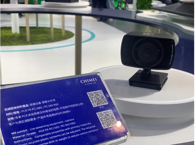 ▲奇美化工帶來了直播設(shè)備-攝像頭外殼解決方案。產(chǎn)品外殼選用60%PCR材料。